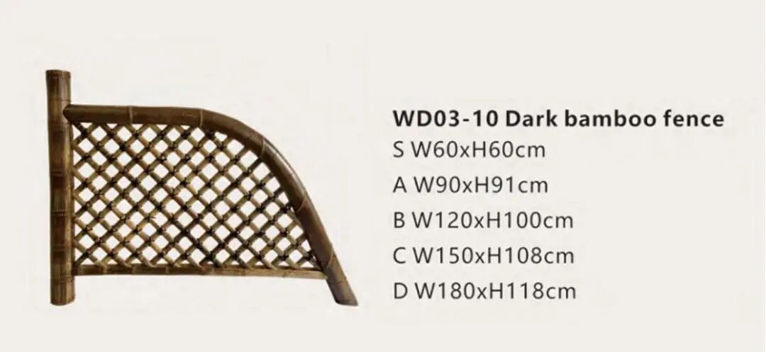 代表型号:WD20489 系列(W150×H120+20cm,20cm为地下埋深),适合庭院分区、阳台遮挡;WD03-11白色竹围栏(尺寸含SW60×H60cm、W90×H91cm 等),轻盈简约,适配现代家居风;